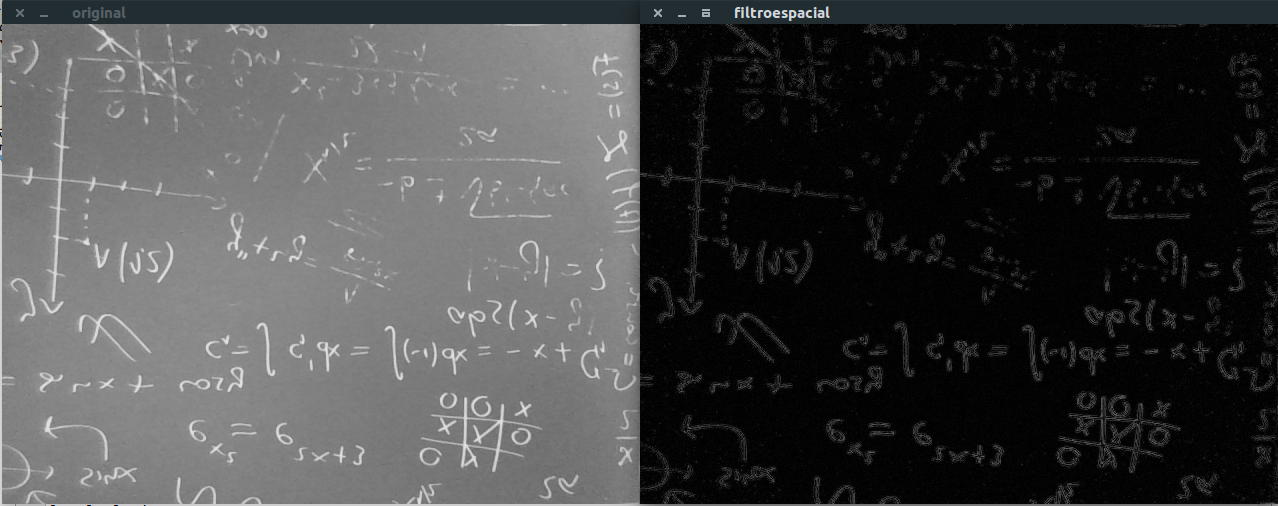 Utilizando o programa exemplos/filtroespacial.cpp como referência, implemente um programa laplgauss.cpp. O programa deverá acrescentar mais uma funcionalidade ao exemplo fornecido, permitindo que seja calculado o laplaciano do gaussiano das imagens capturadas. Compare o resultado desse filtro com a simples aplicação do filtro laplaciano.